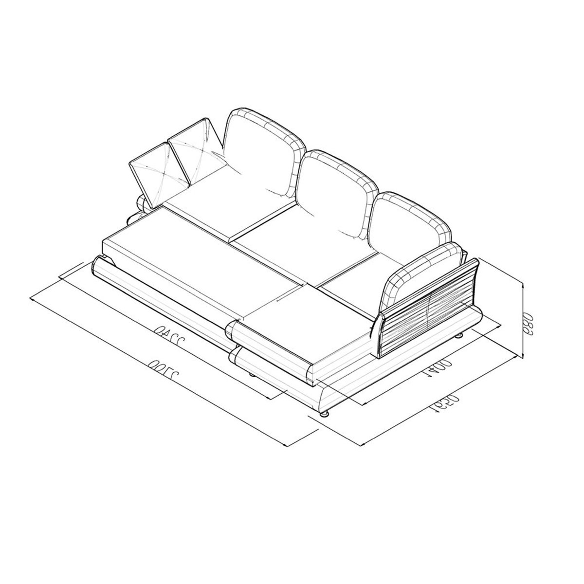- Спальное место 2240 x 1400 мм.