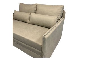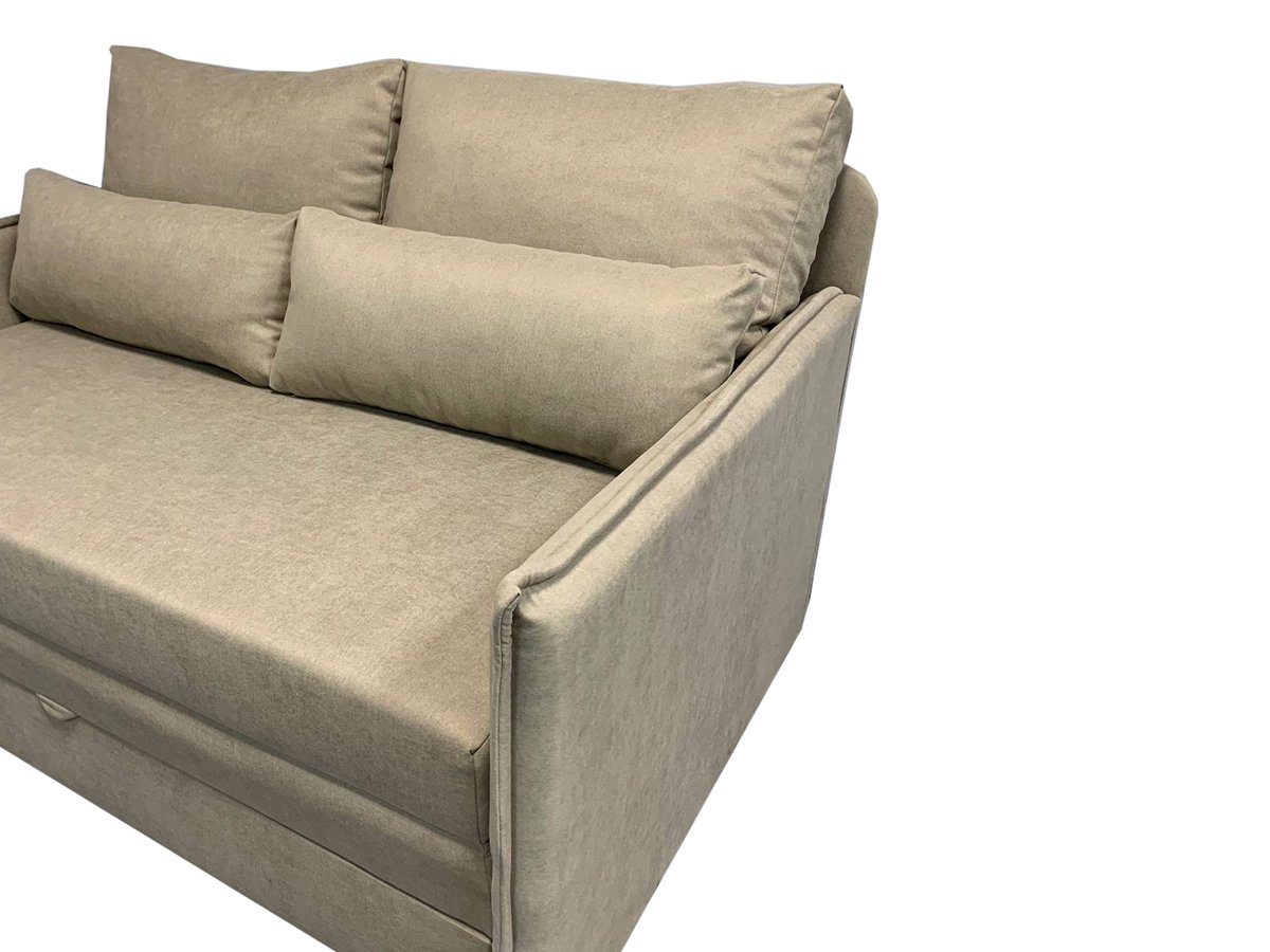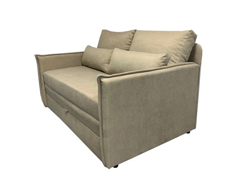 Благодаря выкатному механизму раскладка дивана занимает всего несколько секунд. В несколько движений диван превращается в комфортное спальное место, с чем сможет самостоятельно справиться даже ребенок. Каркас из натурального дерева обеспечивает надежность и долгий срок службы изделия. Основание спального места выполнено из деревянных ламелей, а в качестве материала наполнения использован пенополиуретан. Благодаря надежности конструкции и эластичности ППУ диван может использоваться как спальное место для ежедневного сна.