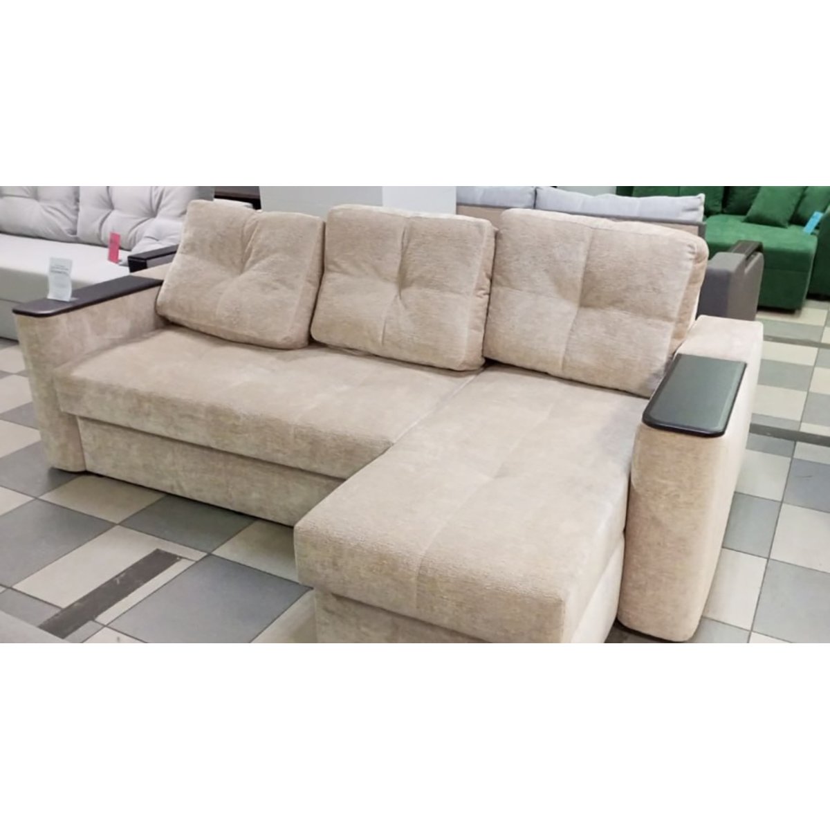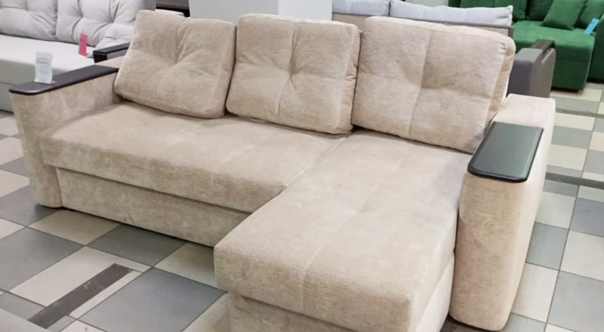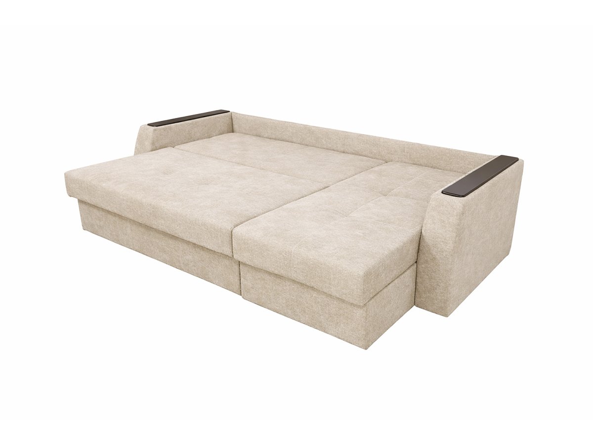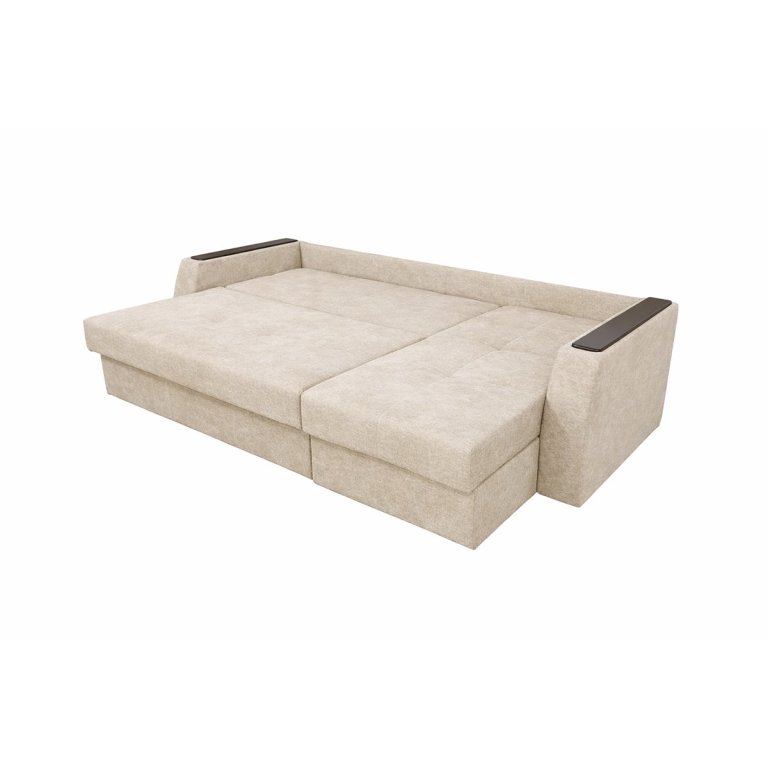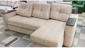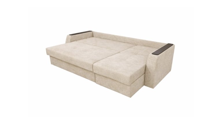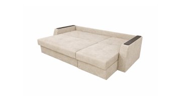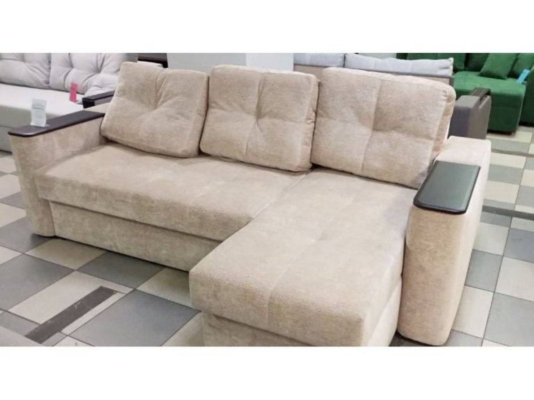 Диван имеет практичную угловую конструкцию с открывающейся подлокотником, обеспечивая дополнительный комфорт в повседневном использовании. Удобная мягкая посадка, полноценное место для сна и светлый нейтральный оттенок делают эту модель удачным выбором для гостиной или квартиры-студии. Дизайн гармонично вписывается в современные интерьеры и не перегружает простор, сохраняя ощущение легкости.