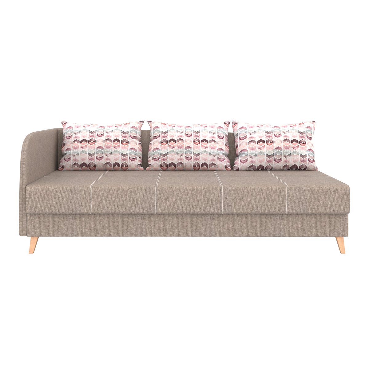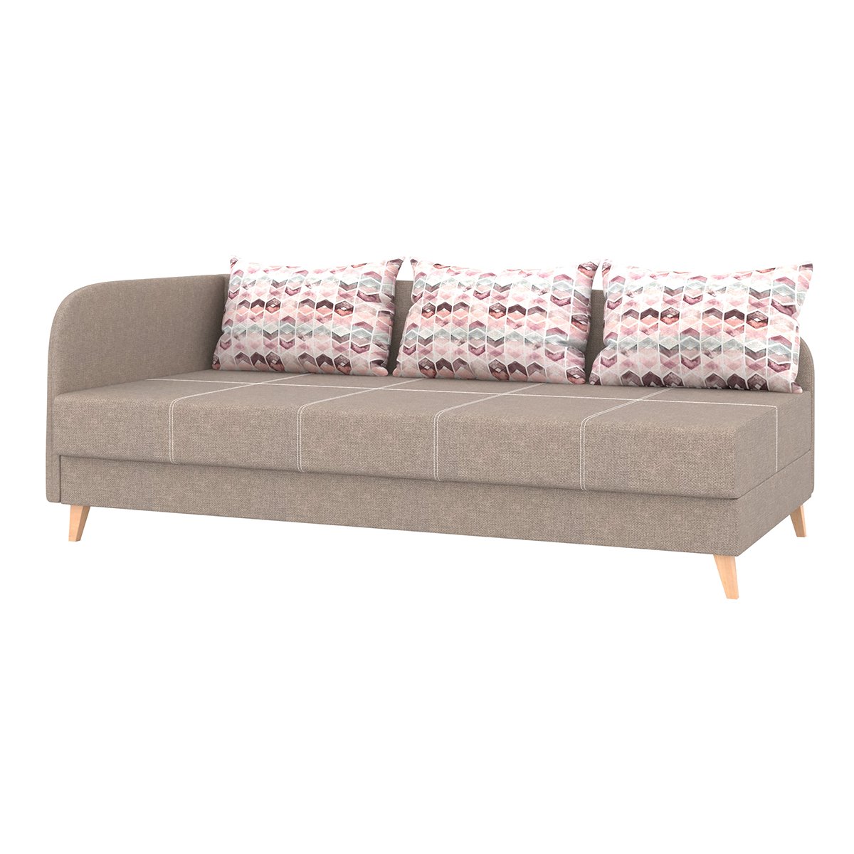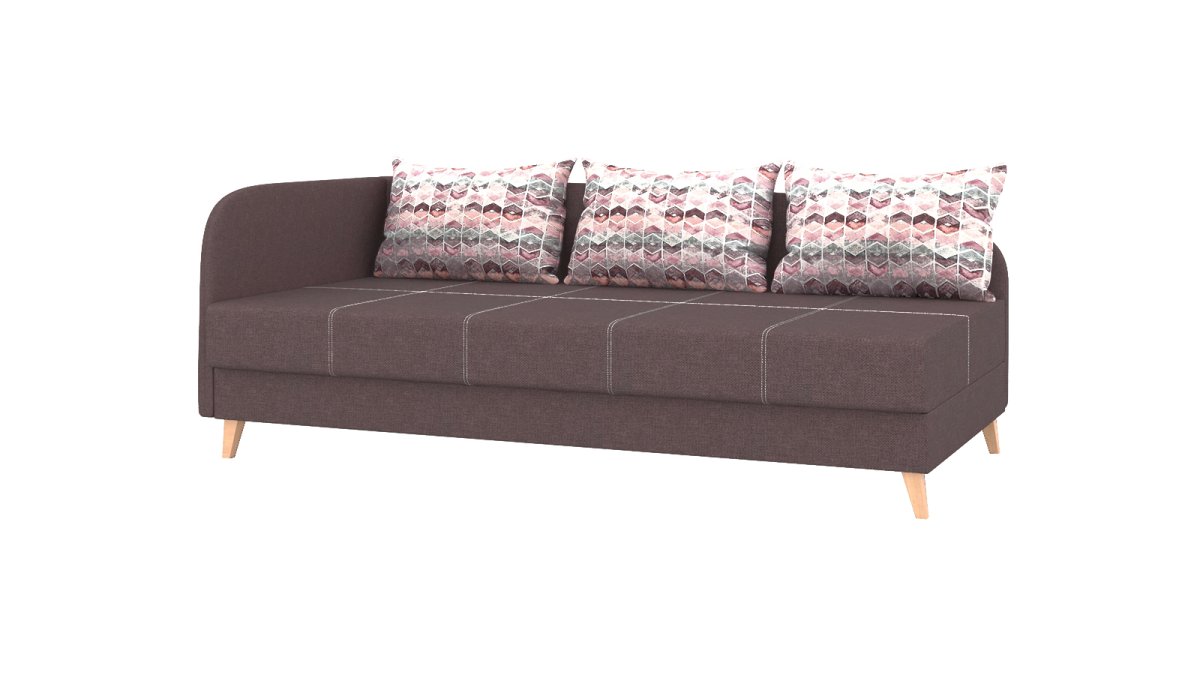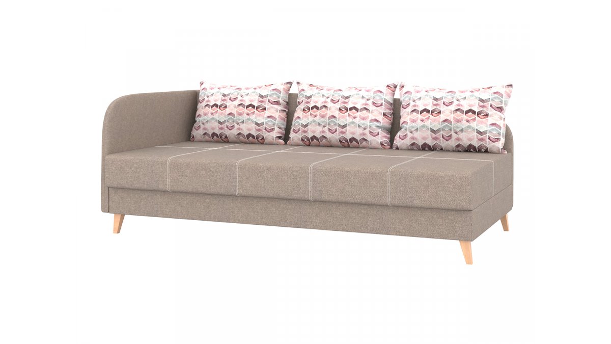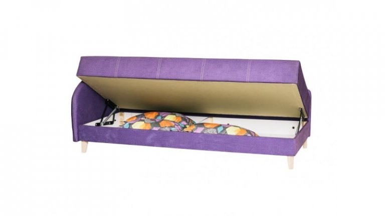 • вместительный ящик под сиденьем позволяет быстро сложить декоративные подушки и превратить софу в спальное место.