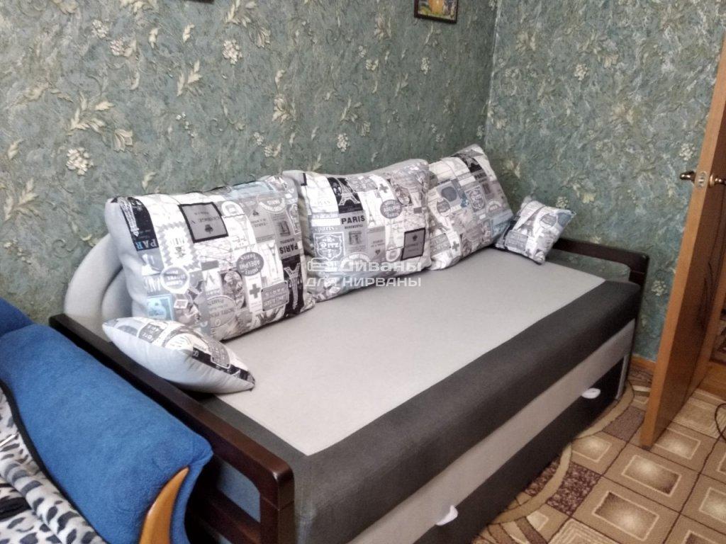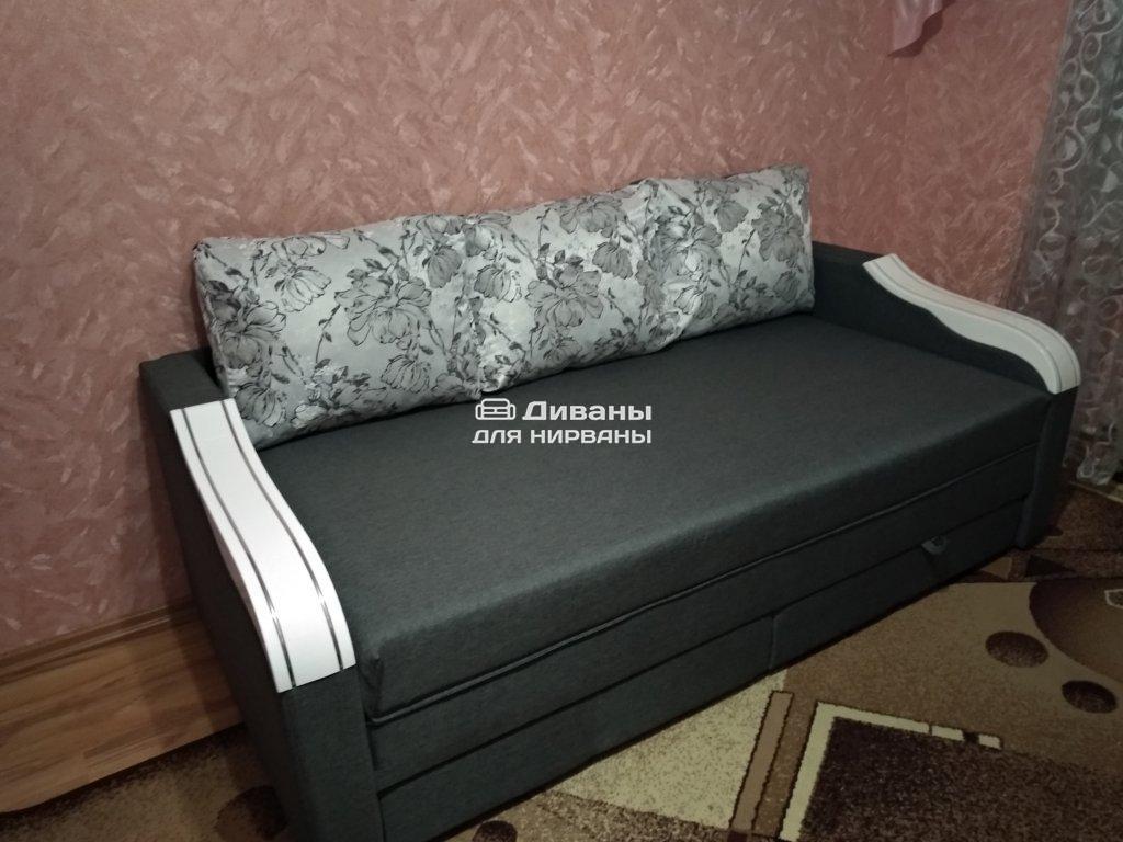 Диван Лорето-4 в своей серии является самой стильной и изощренной моделью. Особого изящества ему прибавляют деревянные подлокотники и большие упругие подушки. Благодаря современному пенополиуретановому наполнителю на диване очень удобно сидеть или лежать. Выдвижной тип конструкции позволяет с легкостью сделать из него кровать на две персоны, размером 1,9м х 2м. Присутствует и вместительный ящик для хранения постельного белья. Дизайн обивки можно подобрать на свой вкус, но наибольшей популярностью пользуется сочетание кусков ткани с кожзаменителем. Модель Лорето-4 может стать отличным акцентом для интерьера комнаты. Он подходит для ежедневного пользования, так как изготовлен из прочных материалов.