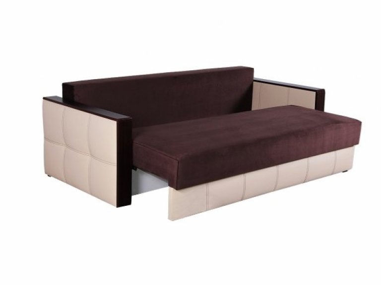 Прекрасная, малогабаритная и качественная модель с удобной раскладкой «Еврокнижка» в виде «шагающего» механизма. В разложенном виде имеет широкое спальное место для двоих человек, а в неразложенном виде на ней спокойно может отдохнуть и один человек, убрав подушки. Под сиденьем находится очень вместительная бельевая ниша из ламинированного ДСП. Диван выполнен из экологически чистых и качественных материалов. Красивый и стильный дизайн данной модели впишется в любую небольшую комнату и станет прекрасным дополнением Вашего интерьера.