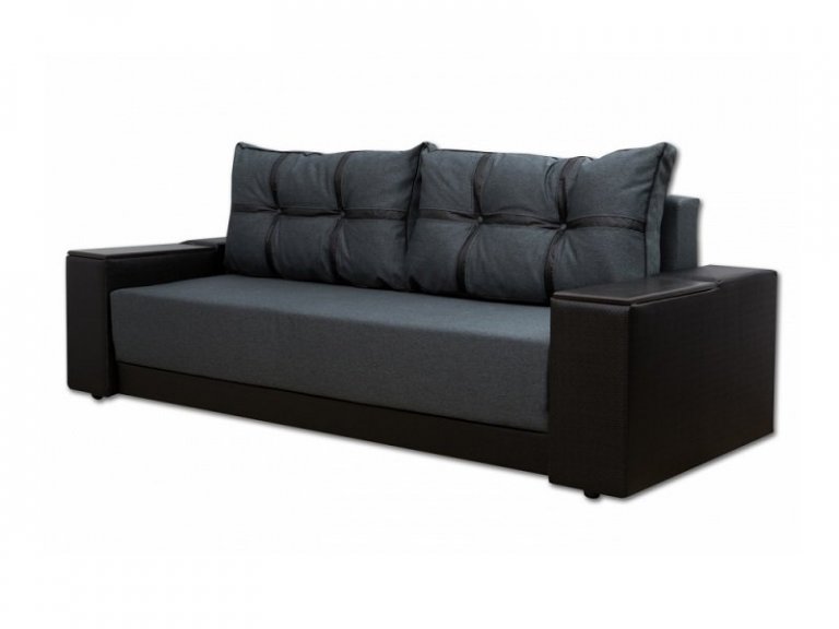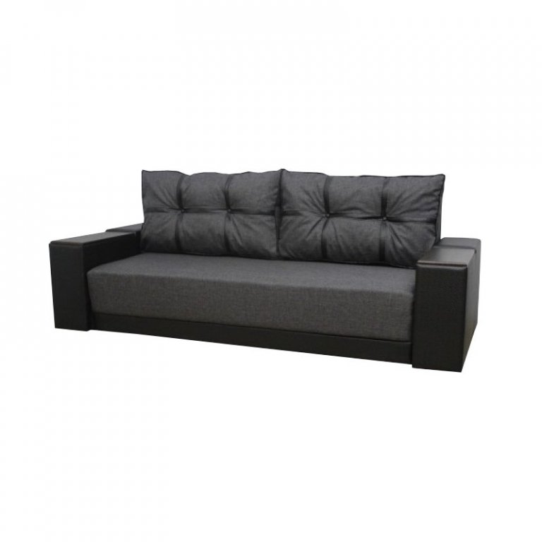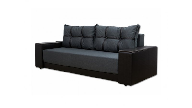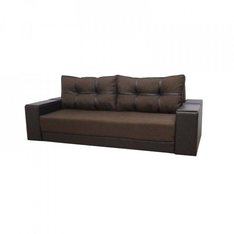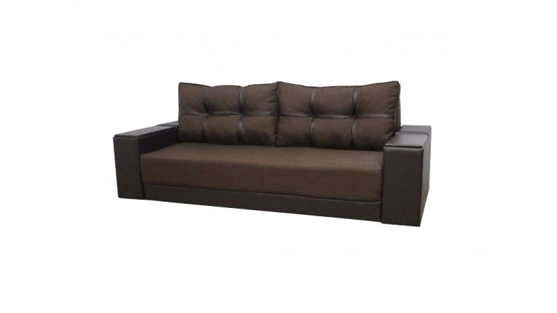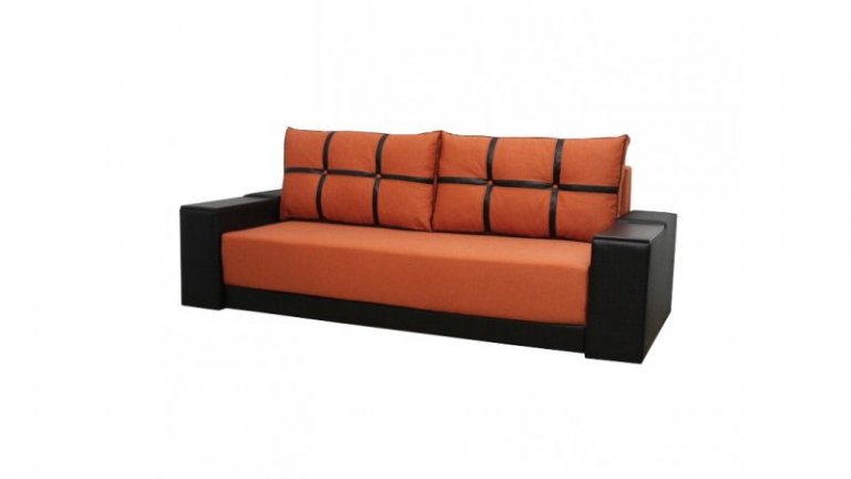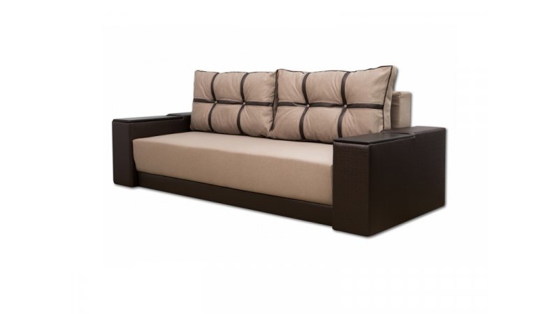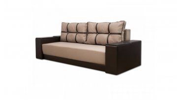 Диван Марис наилучшим образом подойдет любителям красиво и недорого оформить интерьер своего дома. Данный элемент мебели отличен от остальных подобных моделей именно своим внешним видом. На него и был сделан акцент. Диван выглядит совершенно нестандартно и кроет в себе несколько козырей, которые непременно порадуют тех, кто все же решил отдать преимущество дивану именно этой модели. Подлокотники выполнены из дерева. Дизайн их позволяет использовать подлокотники в качестве столешницы, куда при необходимости можно поставить чашку или тарелку. Секрет в том, что деревянные вставки приподнимаются и можно увидеть небольшие ниши, куда вы сможете спрятать что-угодно. Внутри данного дивана имеется пружинный блок и пенополиуретан. В комплект идут две большие мягкие подушки, которые визуально делятся на шесть секций. Их можно свободно перемещать и, если есть необходимость, имеется возможность вовсе убрать их.