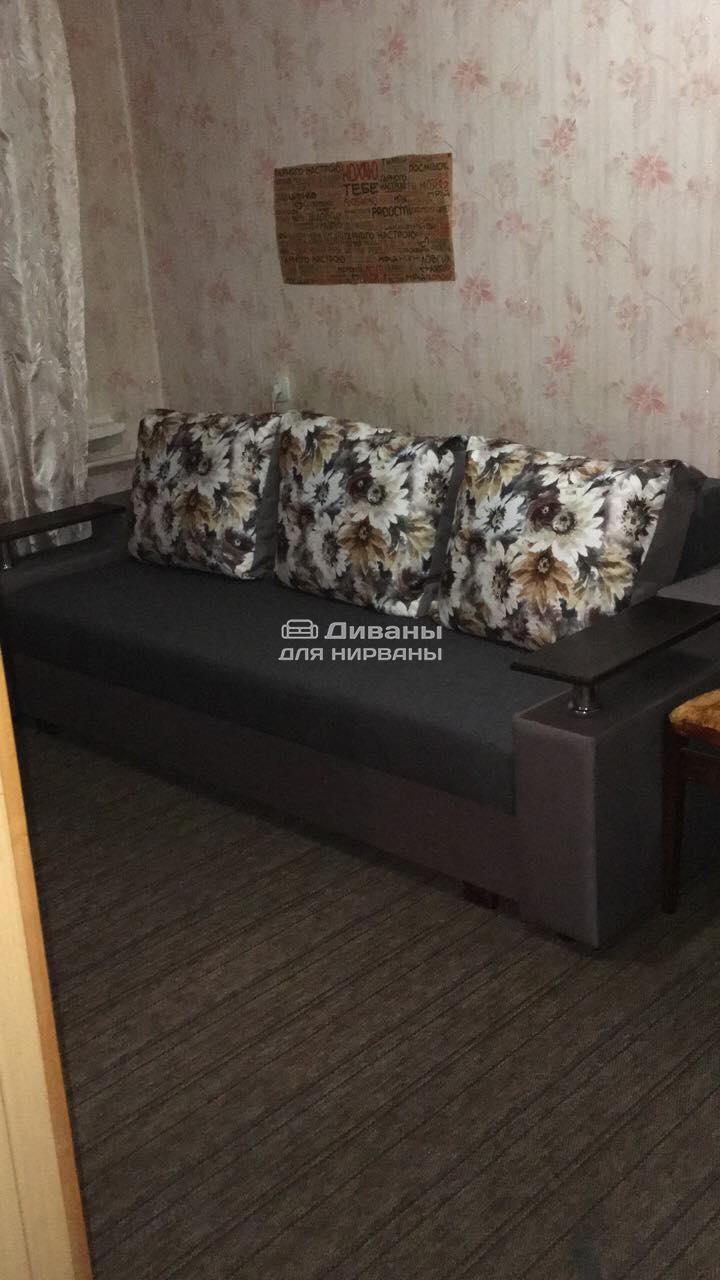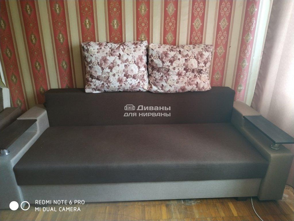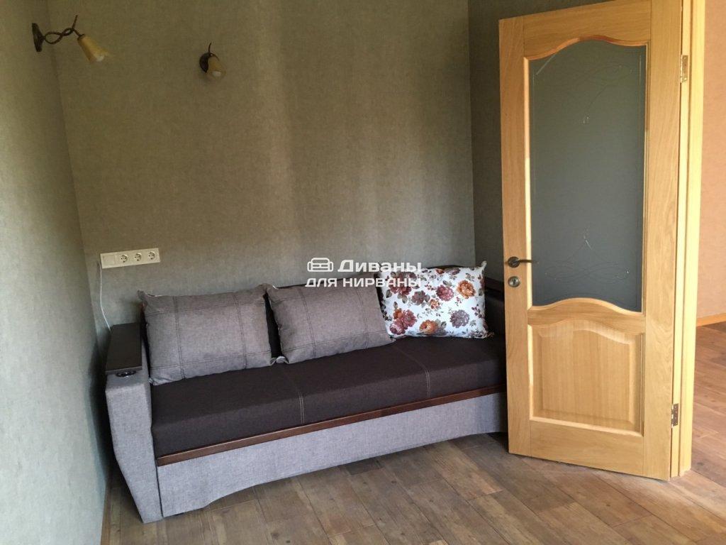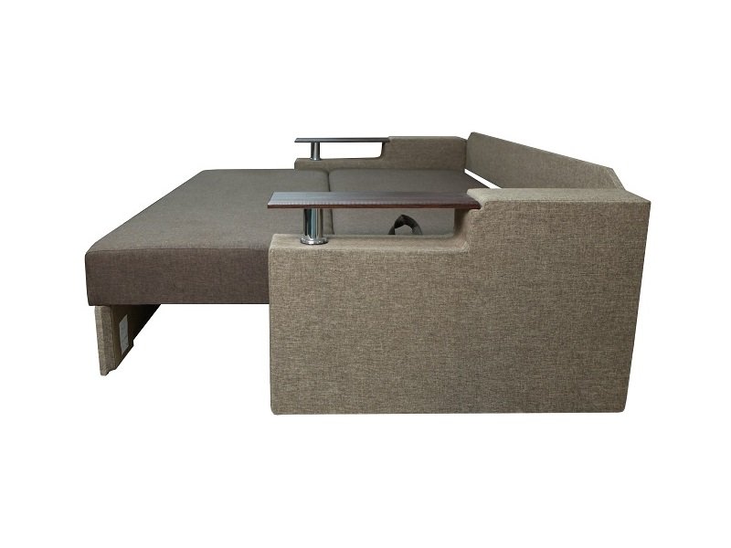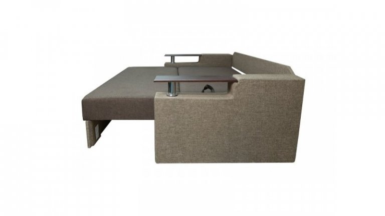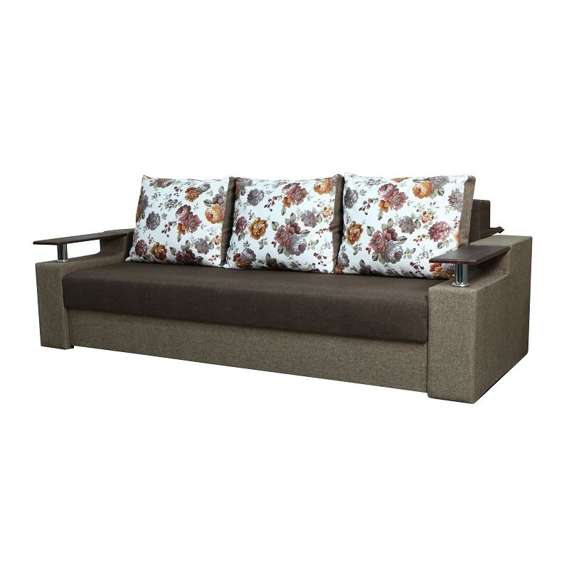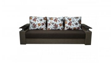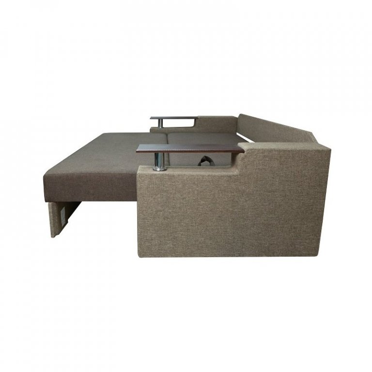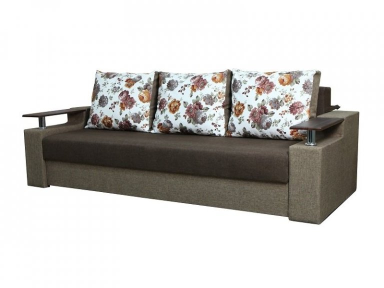 Идеальный вариант для гостиной: не занимает слишком много пространства, но при этом достаточно вместительный. Можно использовать как дополнительное спальное место, где свободно лягут двое взрослых людей. Раскладывается без особых усилий, благодаря современному прочному механизму «еврокнижка». Для приема гостей и просмотра фильмов пригодятся твердые накладки на подлокотники из МДФ. На них можно поставить напитки или закуски во время отдыха.