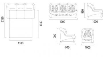 - Спальное место 1930 x 1330 мм.