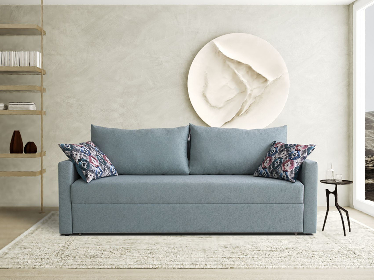 Касательно габаритов – стандартные размеры для двуспальных моделей (2160 х 930 мм). «Премьеру» выбирают даже для помещений с малой площадью, причем в разложенном виде он занимает незначительное полезное пространство гостиной или спальни. Преимущество заключается в возможности размещать изделия такого типа близко к стене. При трансформации «диваны-еврокнижки» раскладываются вглубь комнаты. Занимаемая площадь двуспального места – 1900 х 1500 мм.