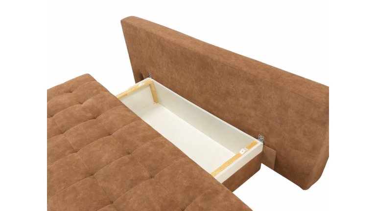 Каркас виконаний з дерева, основа - ламелі з наповненням з ППУ, що забезпечує комфорт і підтримку під час сну. Під сидінням передбачений місткий ящик для зберігання.