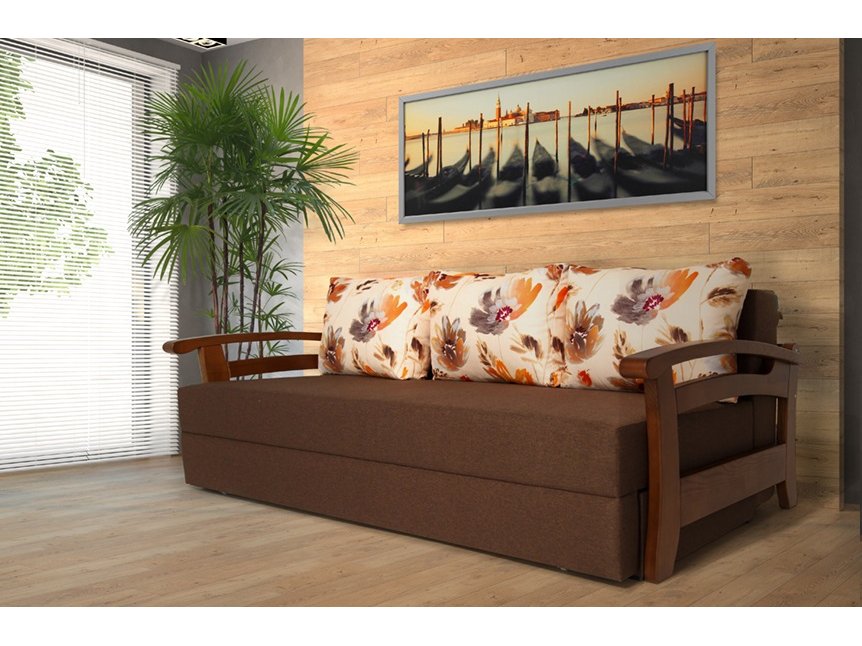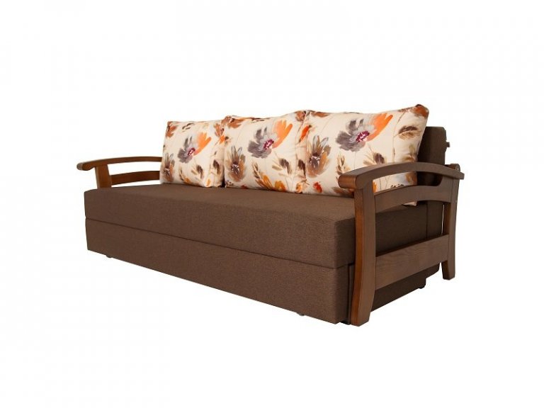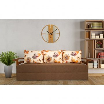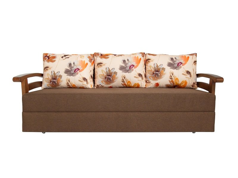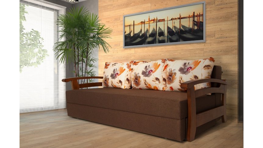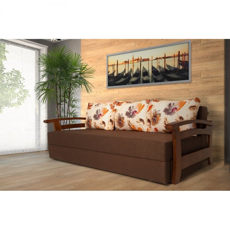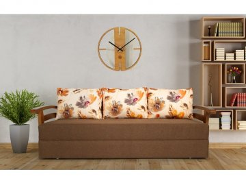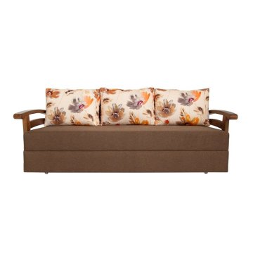 Оббивка дивана забезпечує його збереження і зовнішній вигляд на тривалий час. Наповнювач для подушок - холлофайбер, який відрізняється від синтепону якістю - він добре тримає форму і не вбирає запахи. Підлокітники виготовлені з дерева і покриті якісним лаком, що гарантує їх довговічність і захист від пошкоджень.