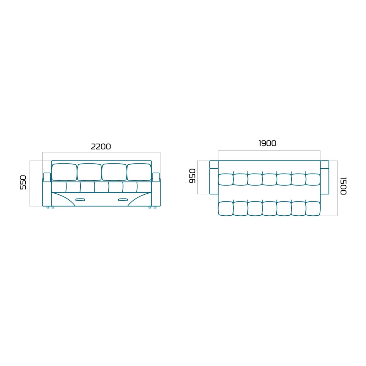 2200 950 мм