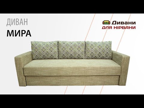 Диван Міра є ідеальним придбанням для вітальні, виконаної в стилі кежуал або кантрі. Однак строгий вид виробів також дозволяє розмістити його і в приміщеннях з іншим стильовим спрямуванням. У комплекті з диваном йдуть три м'яких подушки, а за допомогою механізму розкладання у вигляді еврокнижки диван трансформується в комфортне спальне місце для двох персон. В якості наповнювача виробник використовував пенополіурітан. Цей матеріал на довгий термін зберігає форму виробу, збільшуючи комфорт при експлуатації.
