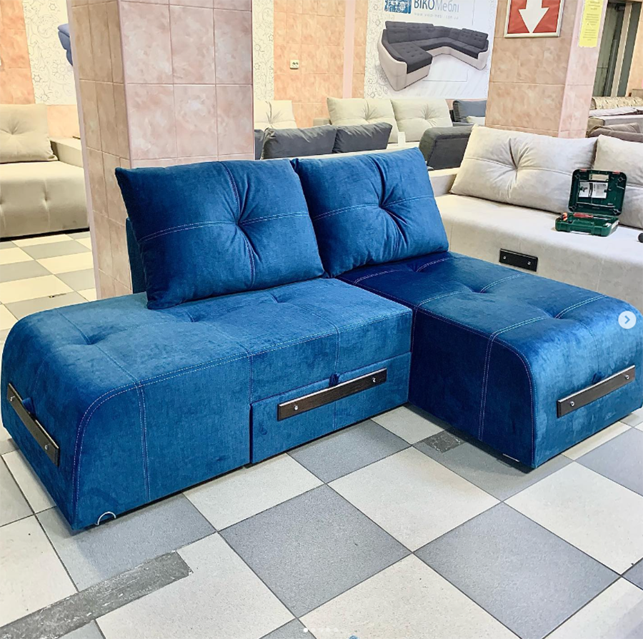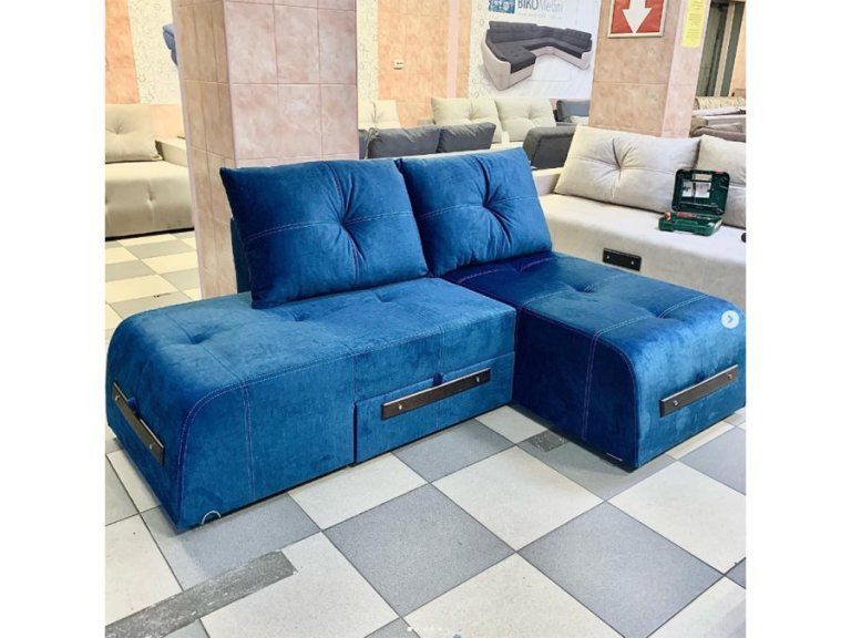 Удобный диван для гостиной, с возможностью трансформации (прямой, право-угловой, лево-угловой, полукровать, полноценная кровать). Умерено мягкий, можно рассматривать как гостевой, так и для постоянного спального места.