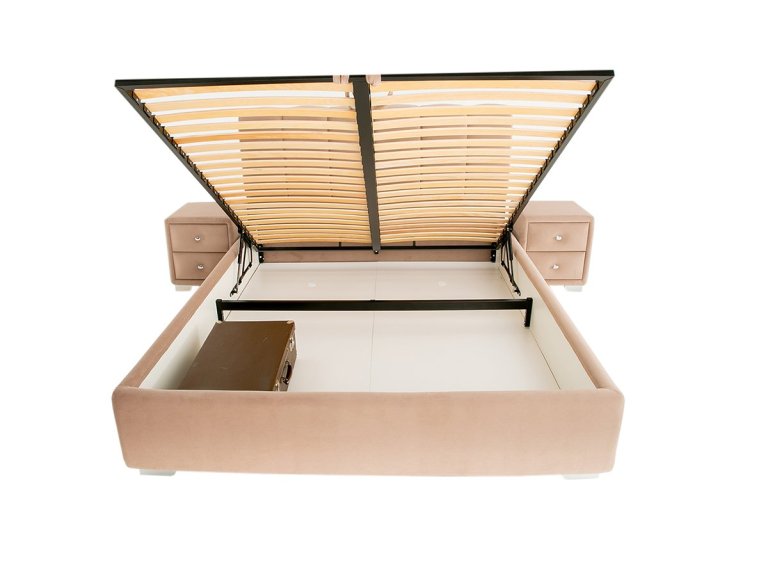 - Особливість ліжка У комплекті з ламелями, М'яка оббивка