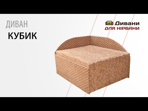 Для виготовлення моделі «Кубик» використовуються виключно якісні та екологічно безпечні матеріали, що підтверджується гігієнічними висновками і сертифікатами. Його наповнення - пінополіуретан, що прекрасно зберігає форму дивана, перешкоджаючи його деформації навіть при інтенсивній експлуатації. Модель не має боковинок, що робить її місткою, а також обладнана нішею для зберігання постільних речей. У комплект входять три подушки.