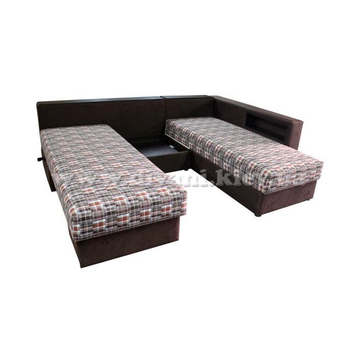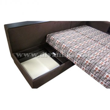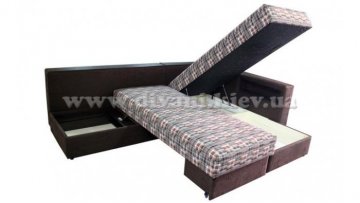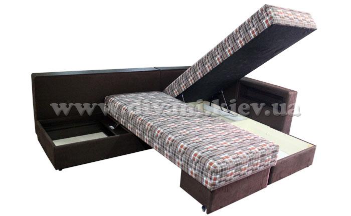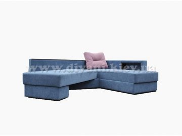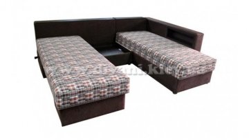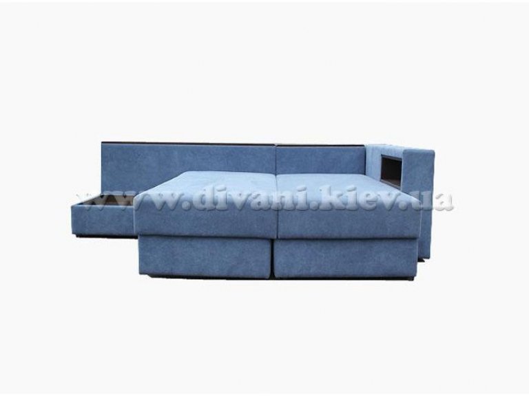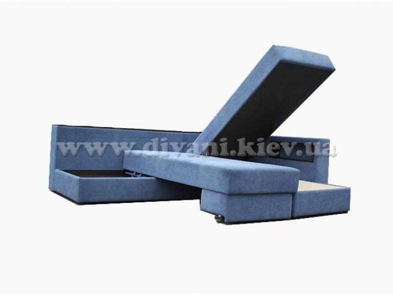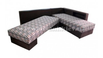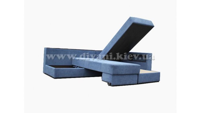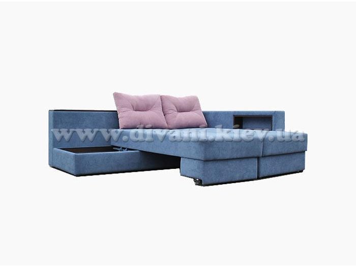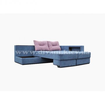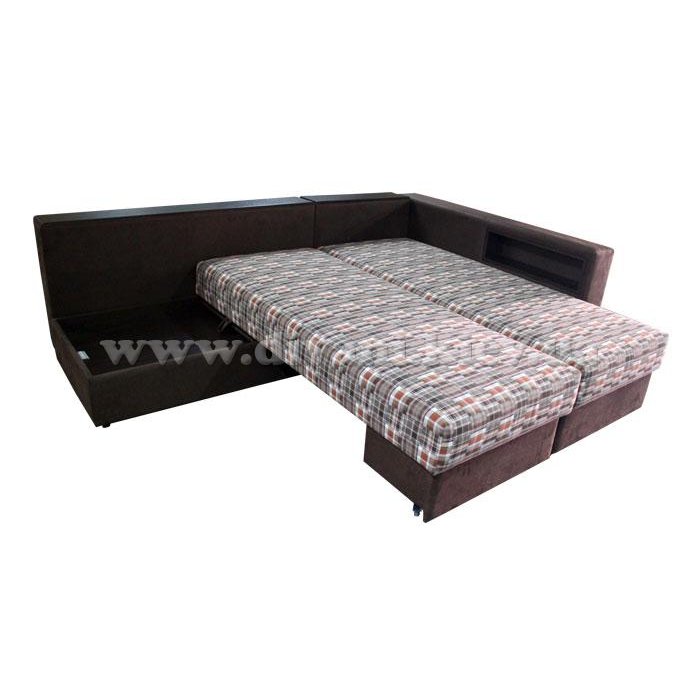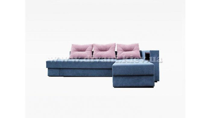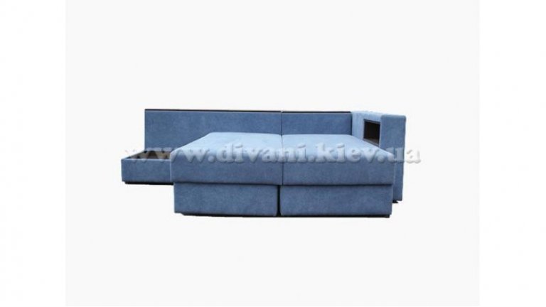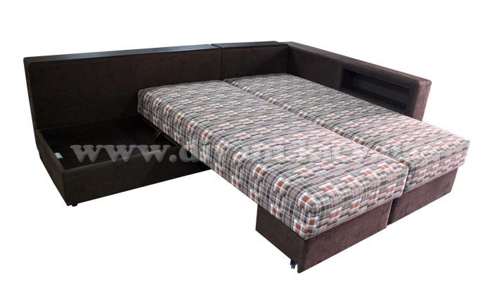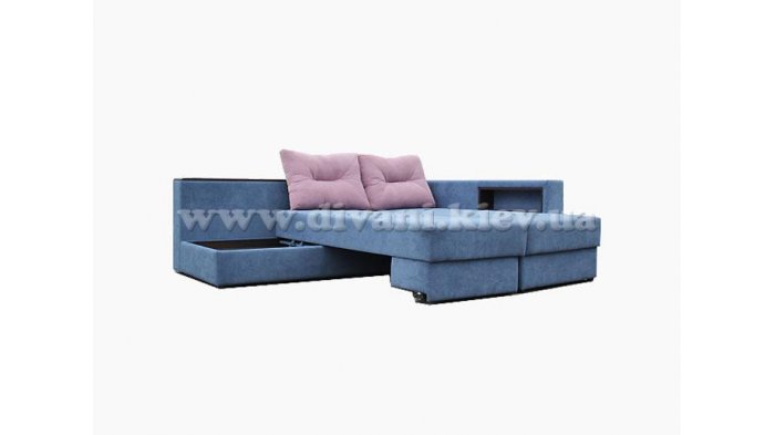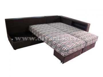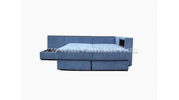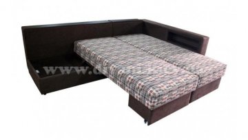 Угловой диван «Кешет-2» - изделие-трансформер. Он удобный, при раскладывании образует большое спальное место. В добавок ко всему он еще и ортопедический, рекомендованный Минздравом, сертифицированный, изготовлен из экологически чистых материалов. Данный диван есть возможность заказывать, выбирая разное наполнение части для сна, а также подушек, варьируя их количество. Вид трансформации данного дивана – «Перекатной», на колёсиках. Есть ниша для белья на подъёмном механизме.