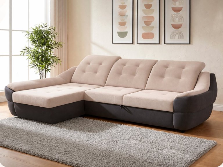 Кроме того, в угловой части дивана находится просторная ниша для хранения белья, что придает практичность этой модели.