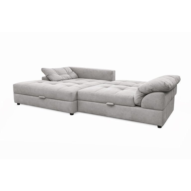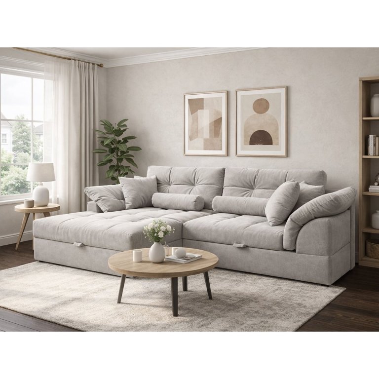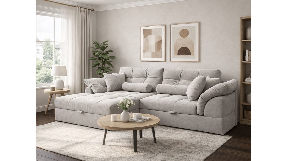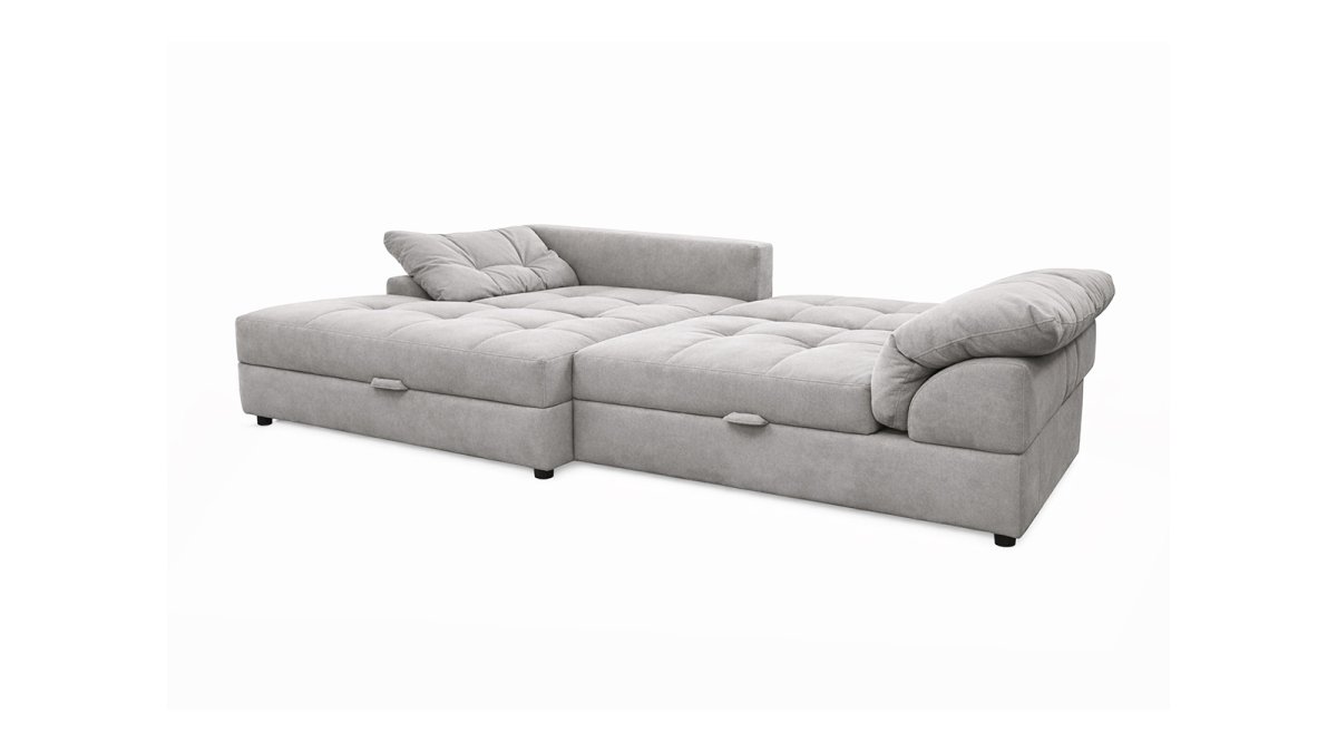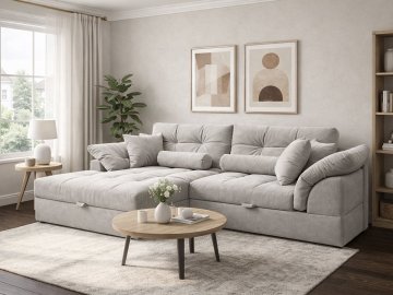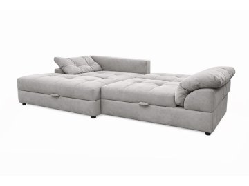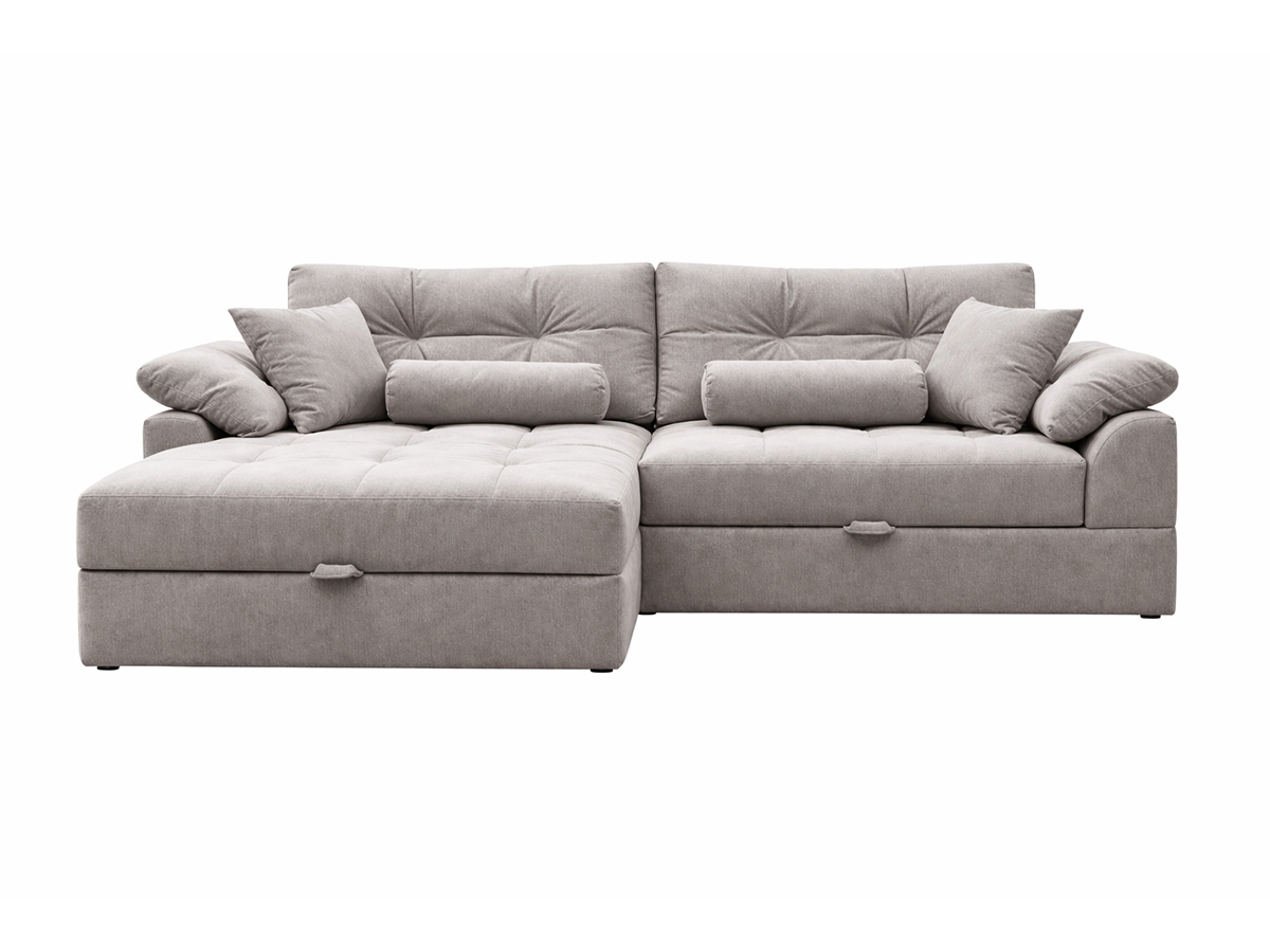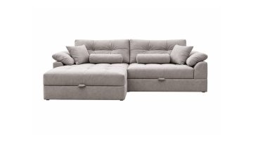 Угловой диван Калифорния Люкс - это тот диван, который хочется обнять, как только заходишь в гостиную. Просторный и уютный, с габаритами 2500x1650 мм, он вмещает всю семью или компанию друзей, а если разложить его, получаем настоящее спальное место 1800х1500 мм, где удобно спать каждый день. Механизм «шагающая еврокнижка» работает плавно и тихо, а под сиденьем спрятан короб для белья - практично и продумано до мелочей.