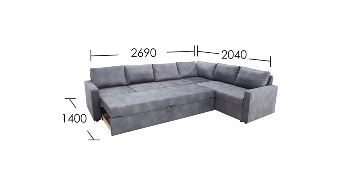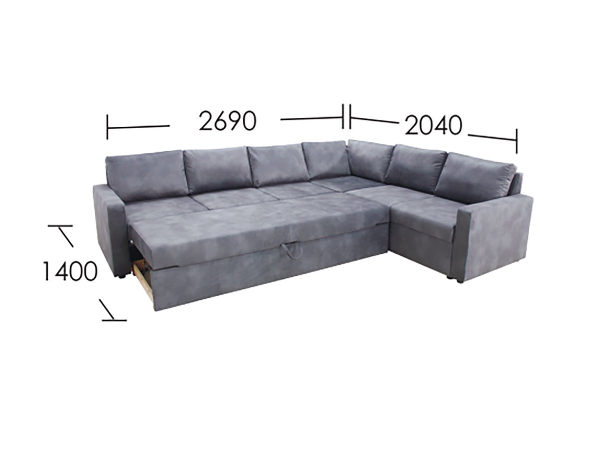 - Спальное место 2690 x 1400 мм.